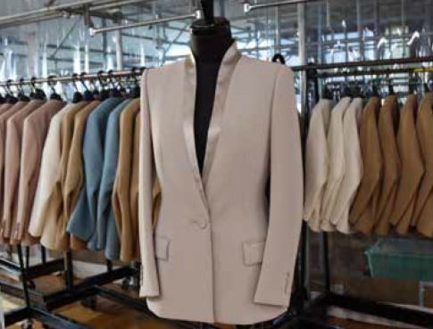 素材試験・スポンジングも社内で行い、又、インターネットにてデータ着信可能・グレーディングも行います。最新鋭のハイテク縫製機器を多数導入し、高品質の製品を短サイクルで縫製します。