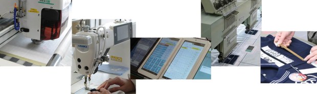 型入→裁断→縫製→検査→包装→出荷